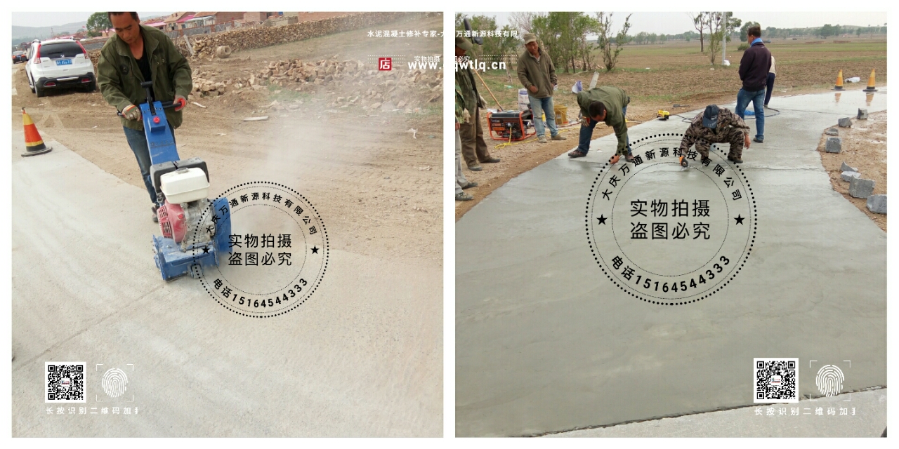 萬通新源水泥混凝土修補料  水泥路面修補 混凝土路面修補料 水泥地面起砂破損修補 水泥路面修補料 水泥地面起砂處理劑 混凝土道路修補料 大慶萬通新源科技有限公司 混凝土道路修補 路面維修 萬通新源電話:15164544333 網址:www.dqwtlq.cn www.wtlq.cn